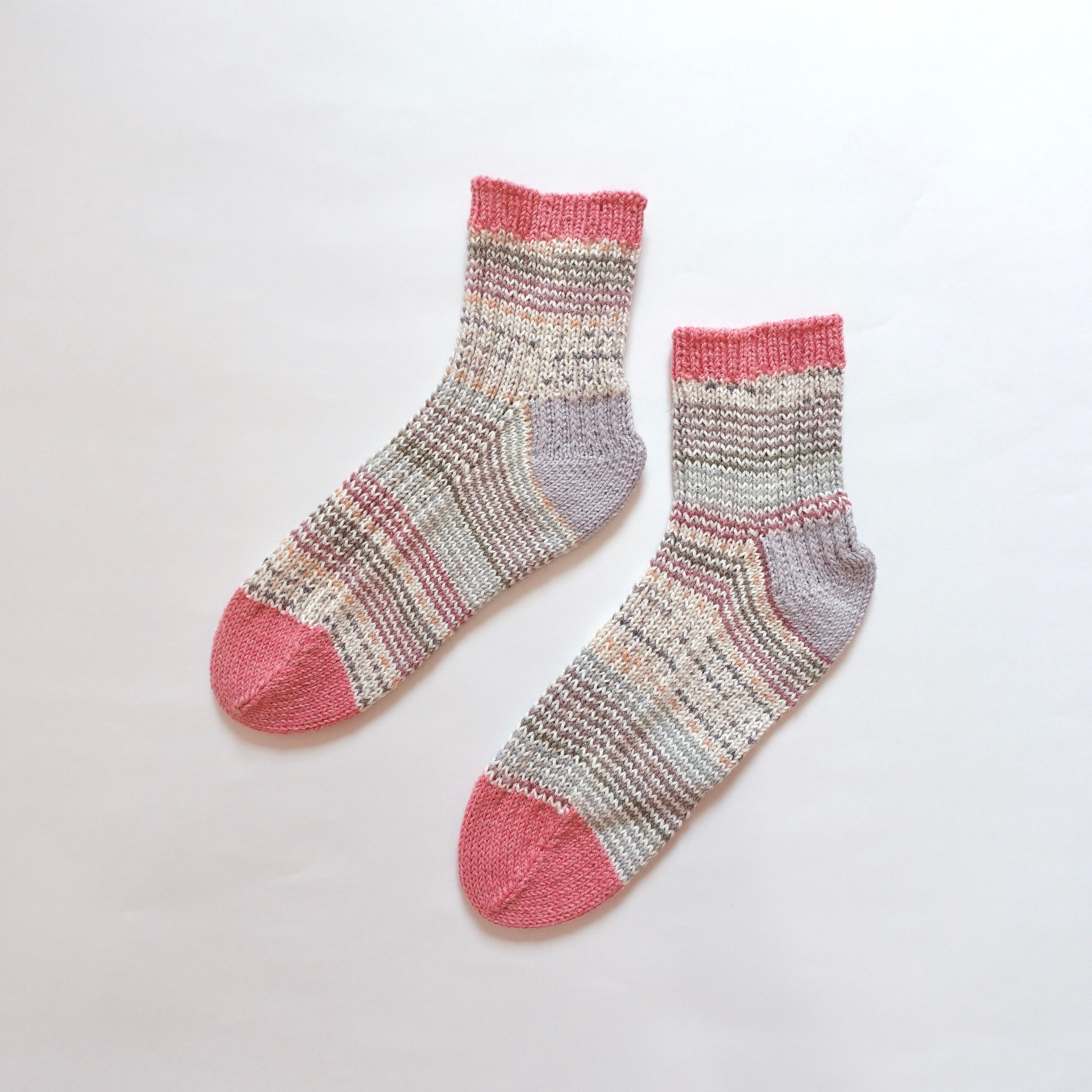 コットンのリブ編みくつした|グレーとピンク|コットン糸